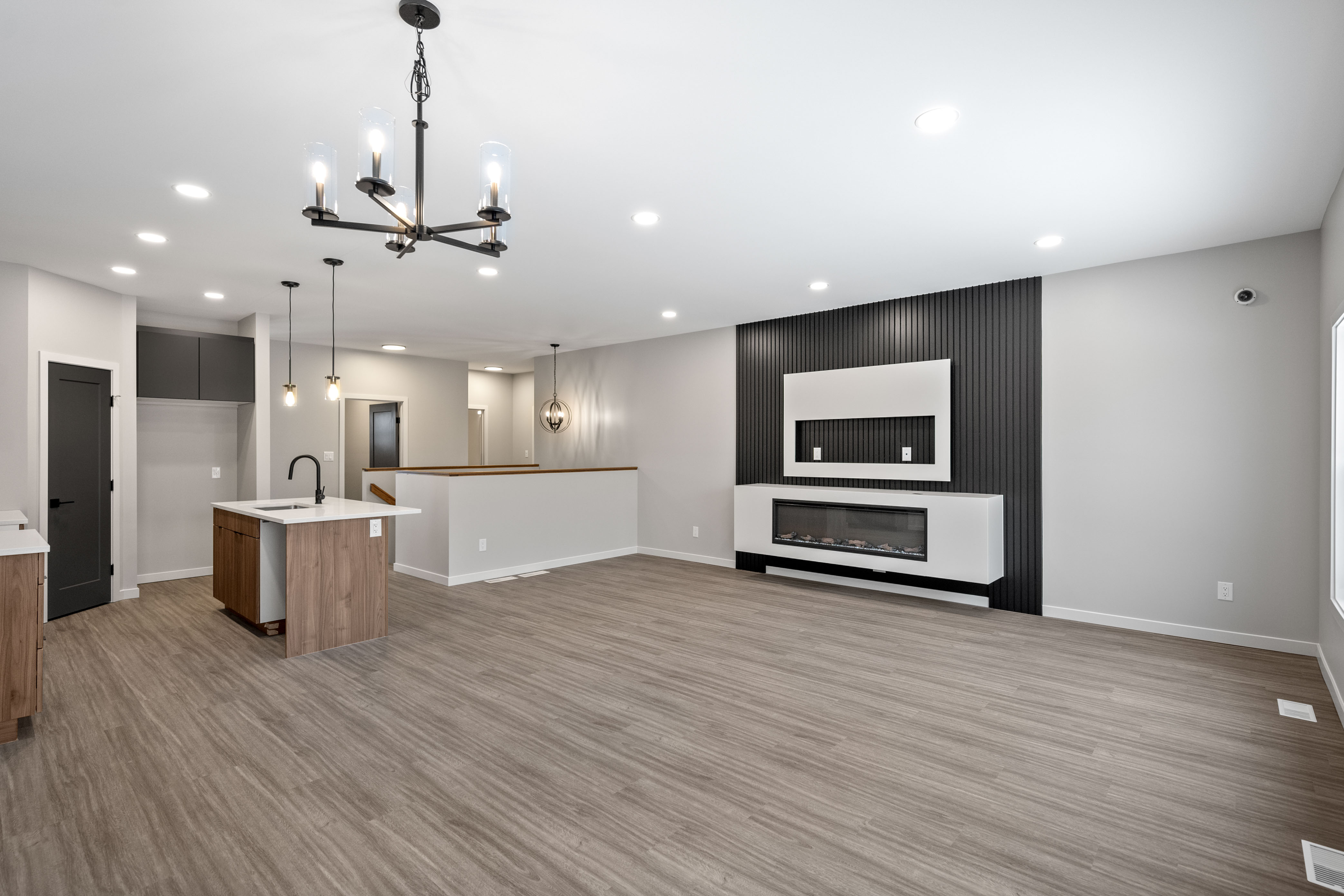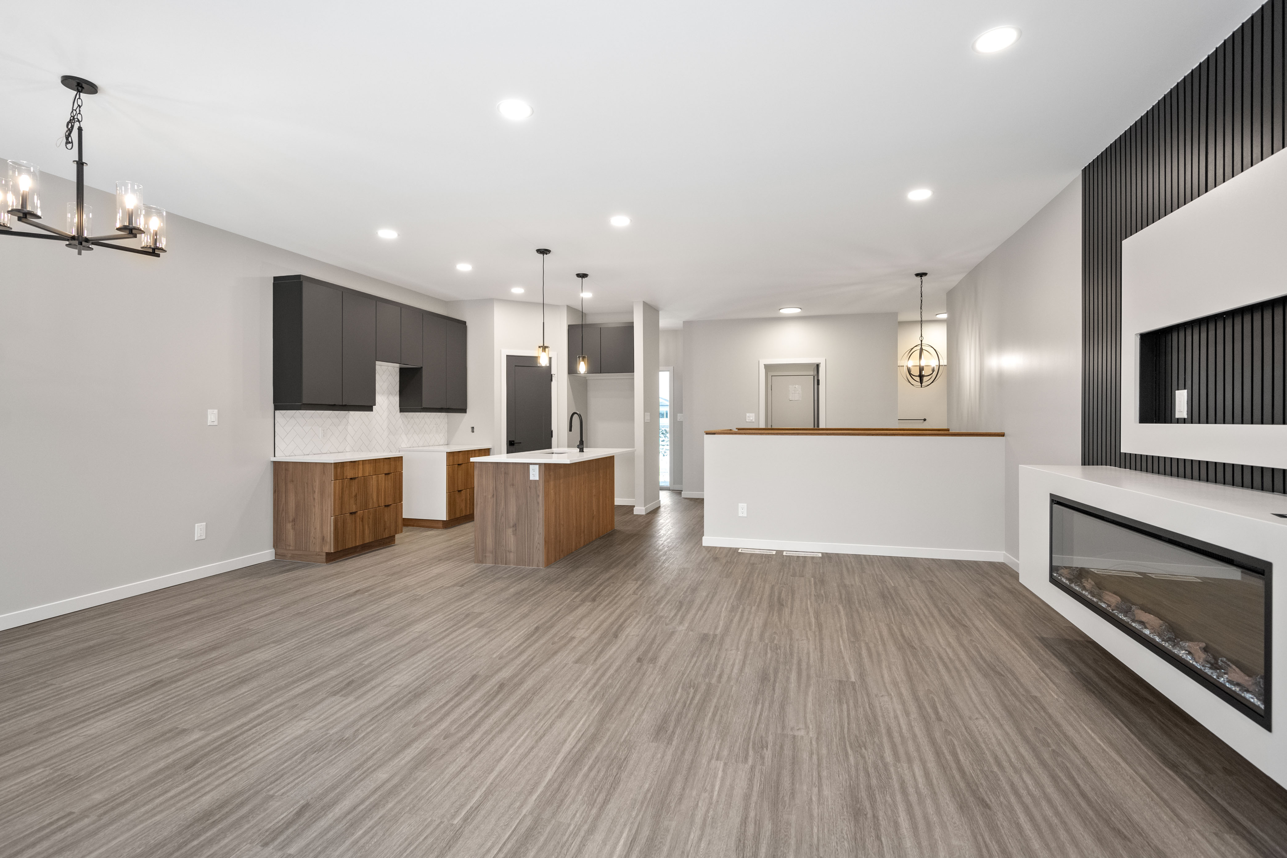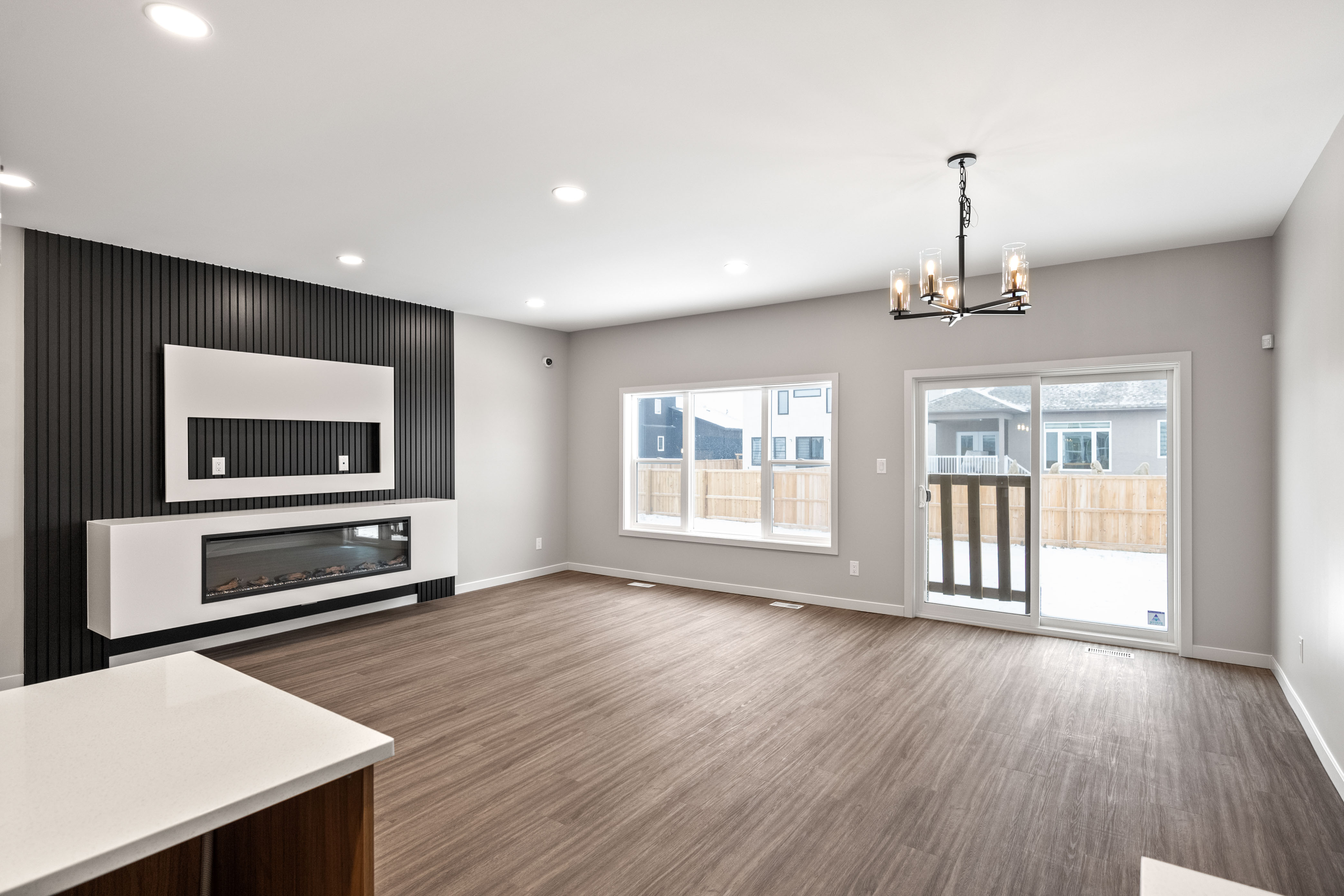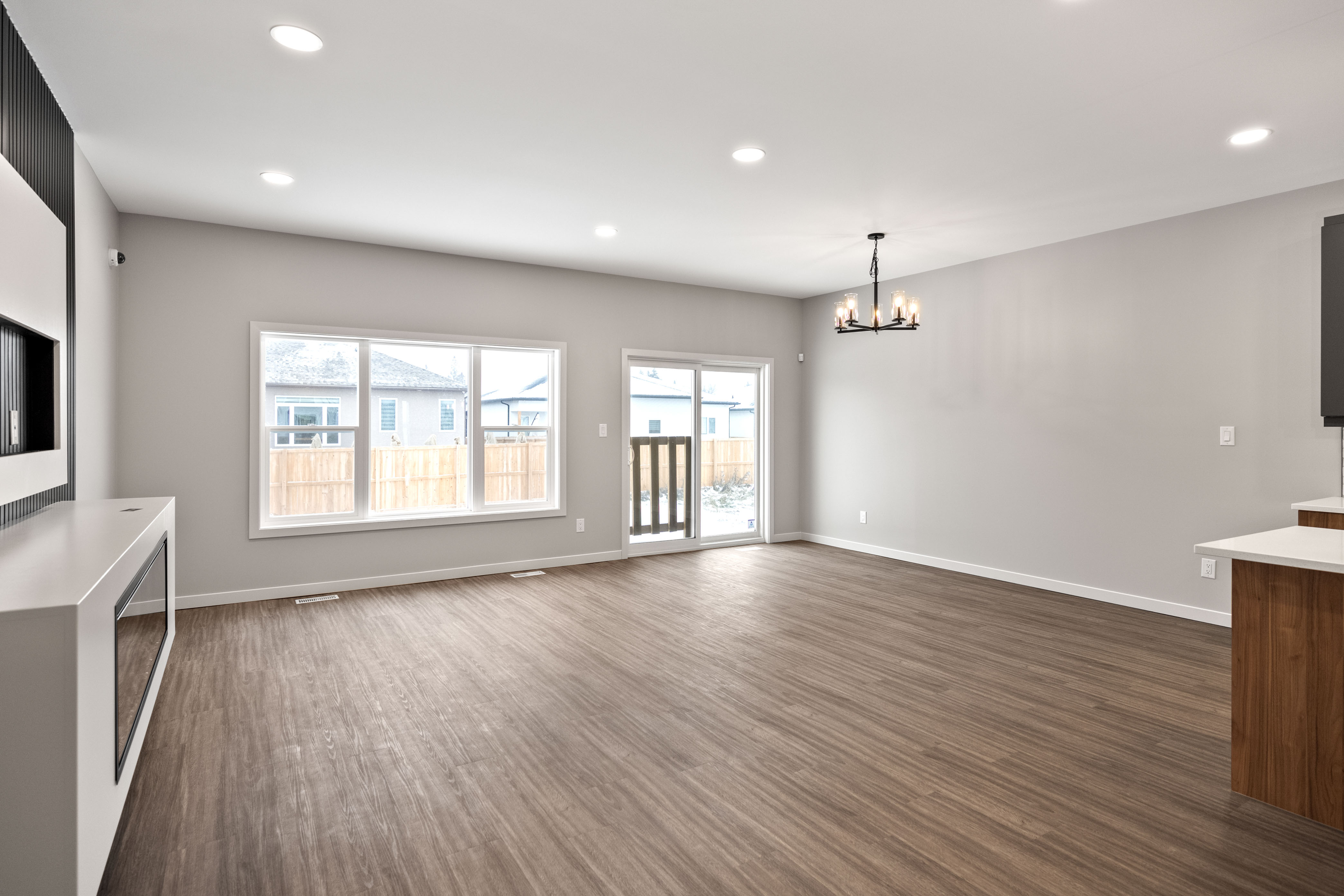 The Dylan by Dan West is a refined 1423 sqft bungalow nestled in West St. Paul. This residence blends modern sophistication with practical comfort. Step through the grand double-entry doors into an inviting foyer that flows into a bright open-concept floor plan. The heart of the home is the gourmet kitchen, featuring a spacious island, sleek pantry, and quartz countertops throughout, making both cooking and entertaining effortless. Adjacent, the living room offers an elegant entertainment wall complete with a 50" electric fireplace, providing the perfect backdrop for gatherings or relaxed evenings. Enjoy 9' main floor ceilings and luxury vinyl plank flooring throughout, creating a cohesive and contemporary aesthetic. The home features 3 well-appointed bedrooms and 2 full bathrooms, designed to deliver privacy and comfort for families and guests. Built with longevity in mind, The Dylan includes a doorbell camera, one interior camera, Delta MS foundation wrap, oversized slider basement windows, and an awning window for drywall access, ensuring exceptional natural light and future development potential. For peace of mind and smart living, the home is roughed-in for camera placement.