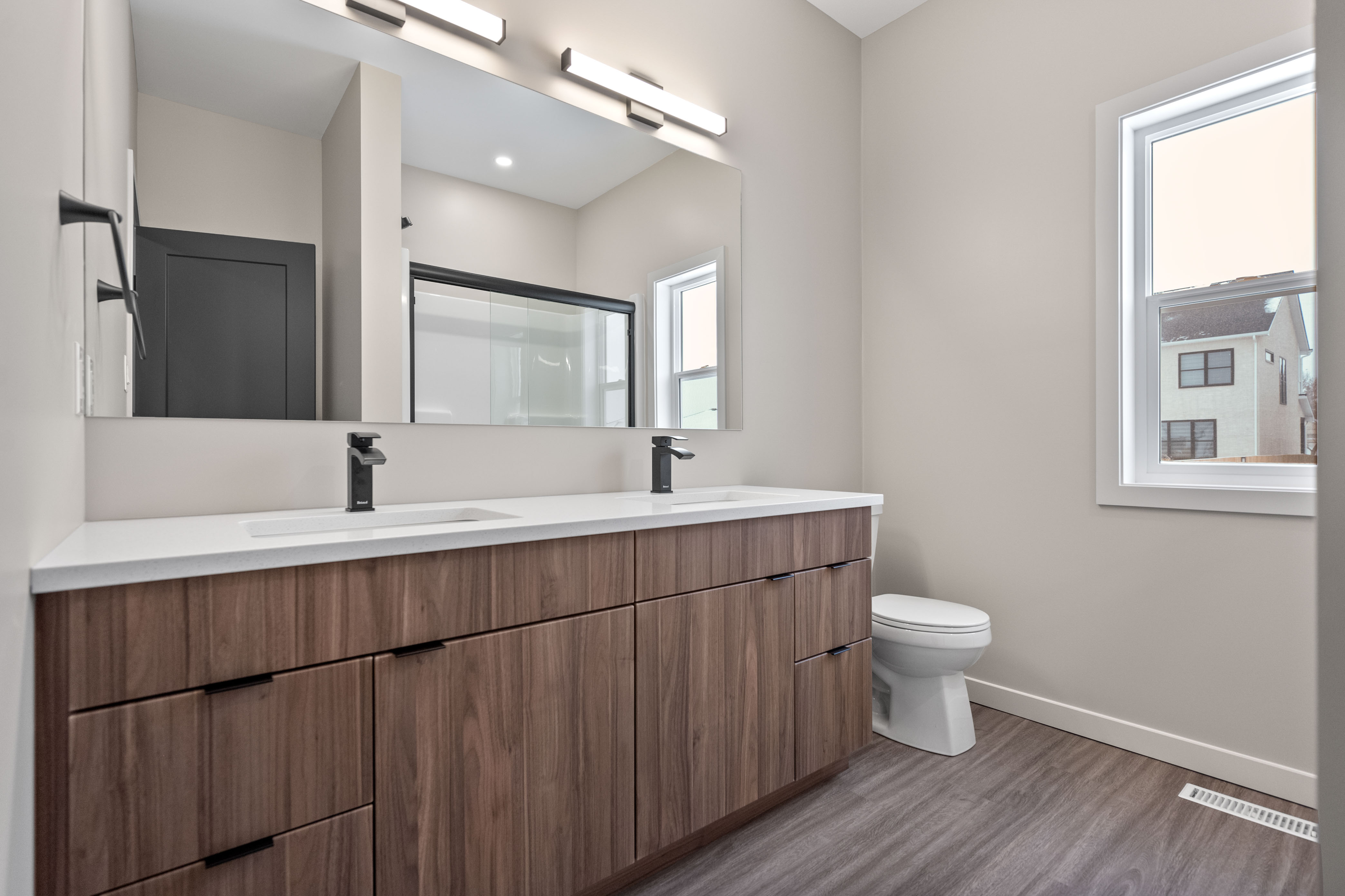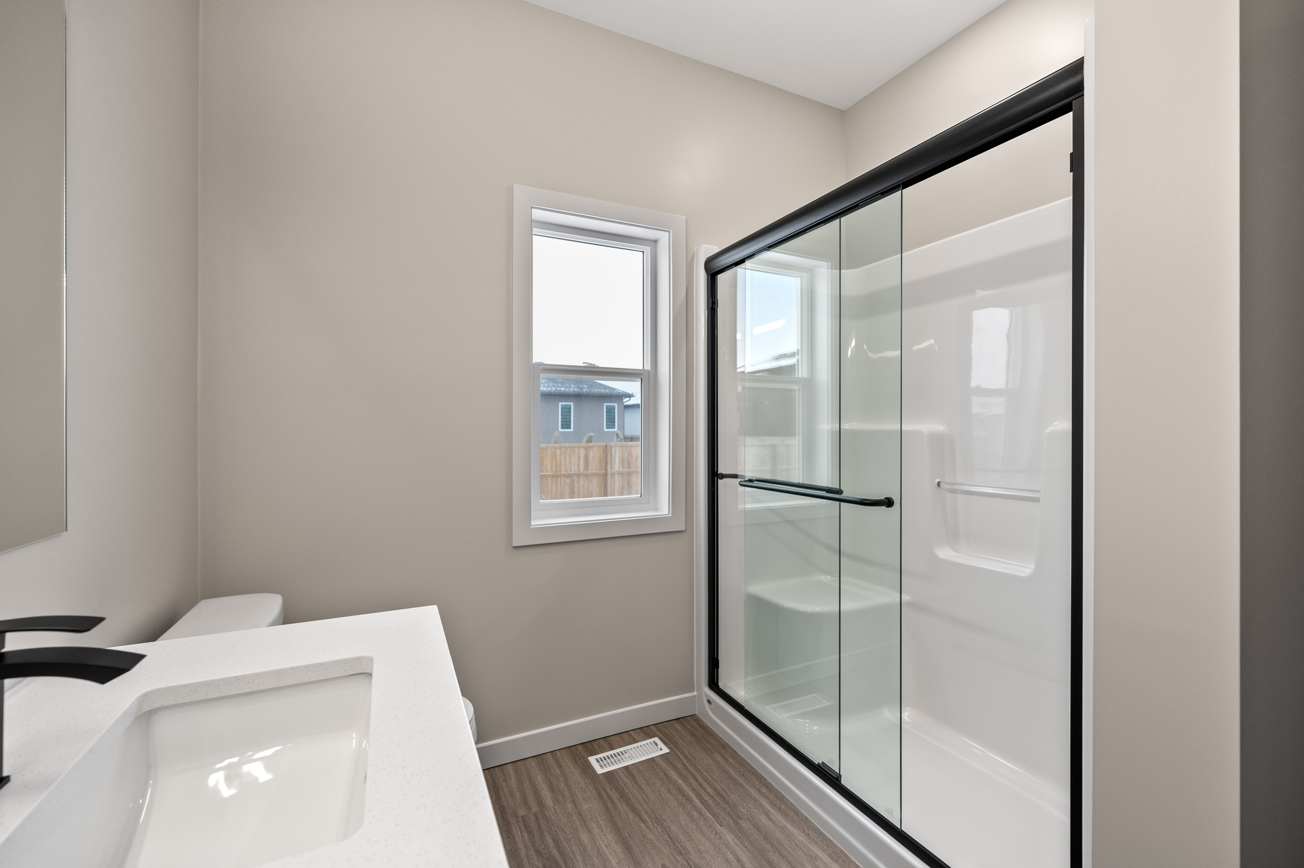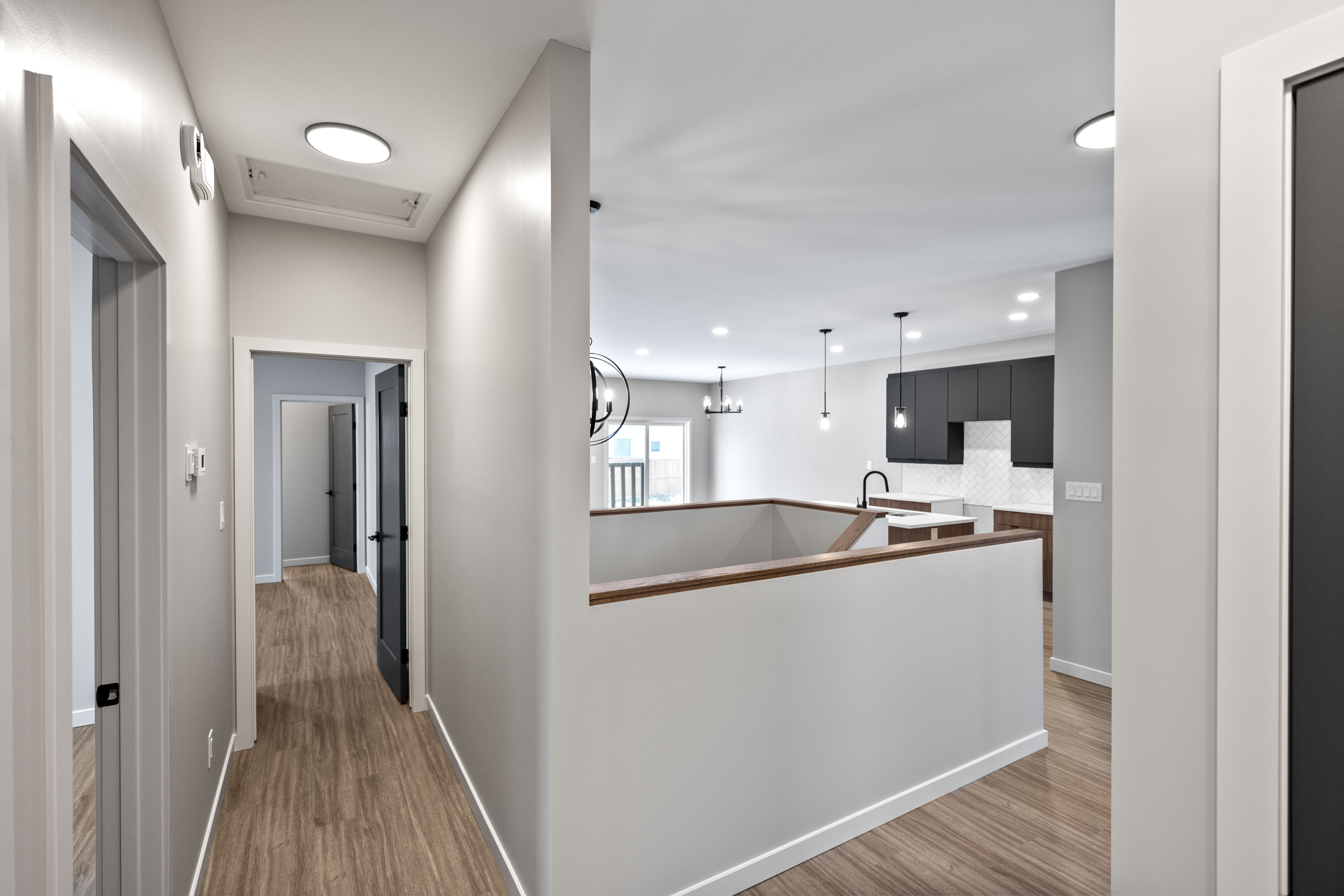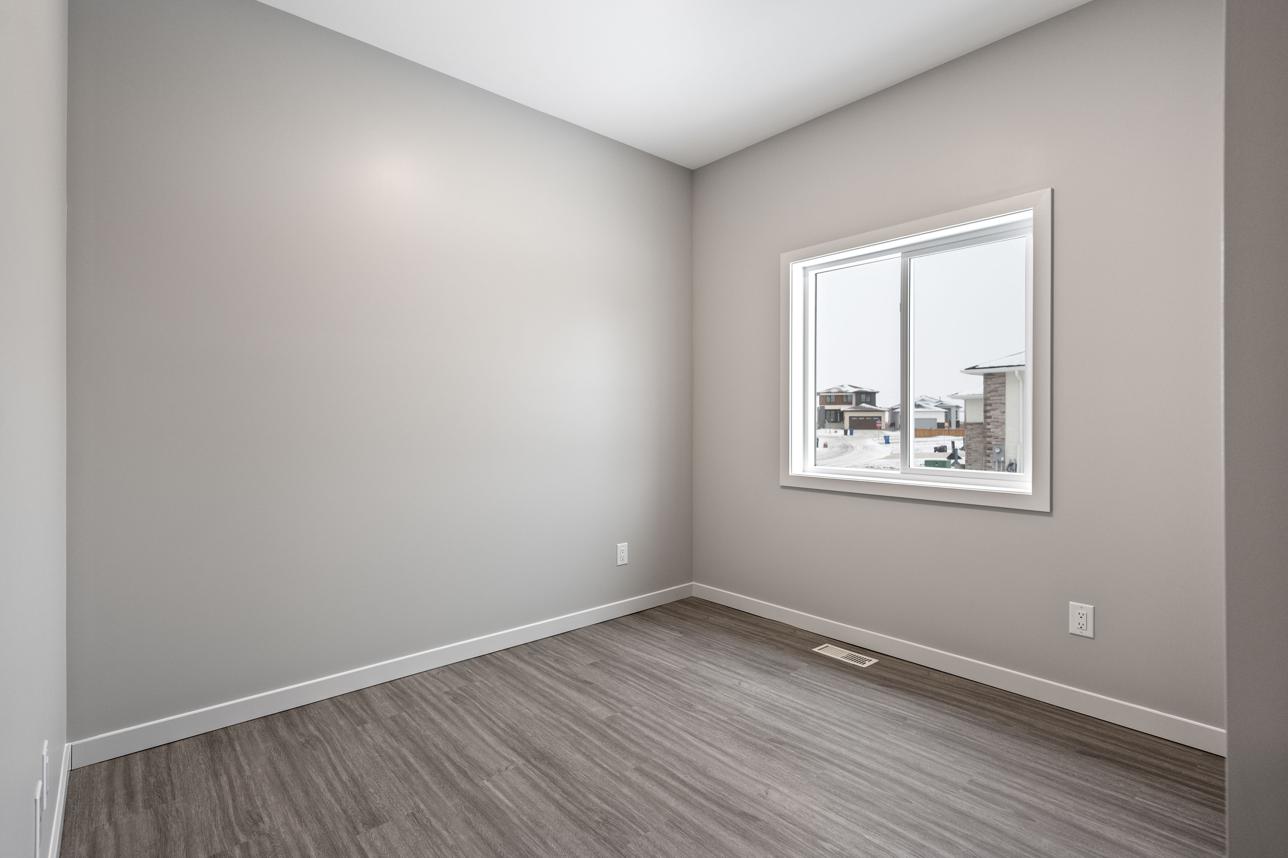 The Dylan by Dan West is a refined 1423 sqft bungalow nestled in West St. Paul. This residence blends modern sophistication with practical comfort. Step through the grand double-entry doors into an inviting foyer that flows into a bright open-concept floor plan. The heart of the home is the gourmet kitchen, featuring a spacious island, sleek pantry, and quartz countertops throughout, making both cooking and entertaining effortless. Adjacent, the living room offers an elegant entertainment wall complete with a 50" electric fireplace, providing the perfect backdrop for gatherings or relaxed evenings. Enjoy 9' main floor ceilings and luxury vinyl plank flooring throughout, creating a cohesive and contemporary aesthetic. The home features 3 well-appointed bedrooms and 2 full bathrooms, designed to deliver privacy and comfort for families and guests. Built with longevity in mind, The Dylan includes a doorbell camera, one interior camera, Delta MS foundation wrap, oversized slider basement windows, and an awning window for drywall access, ensuring exceptional natural light and future development potential. For peace of mind and smart living, the home is roughed-in for camera placement.