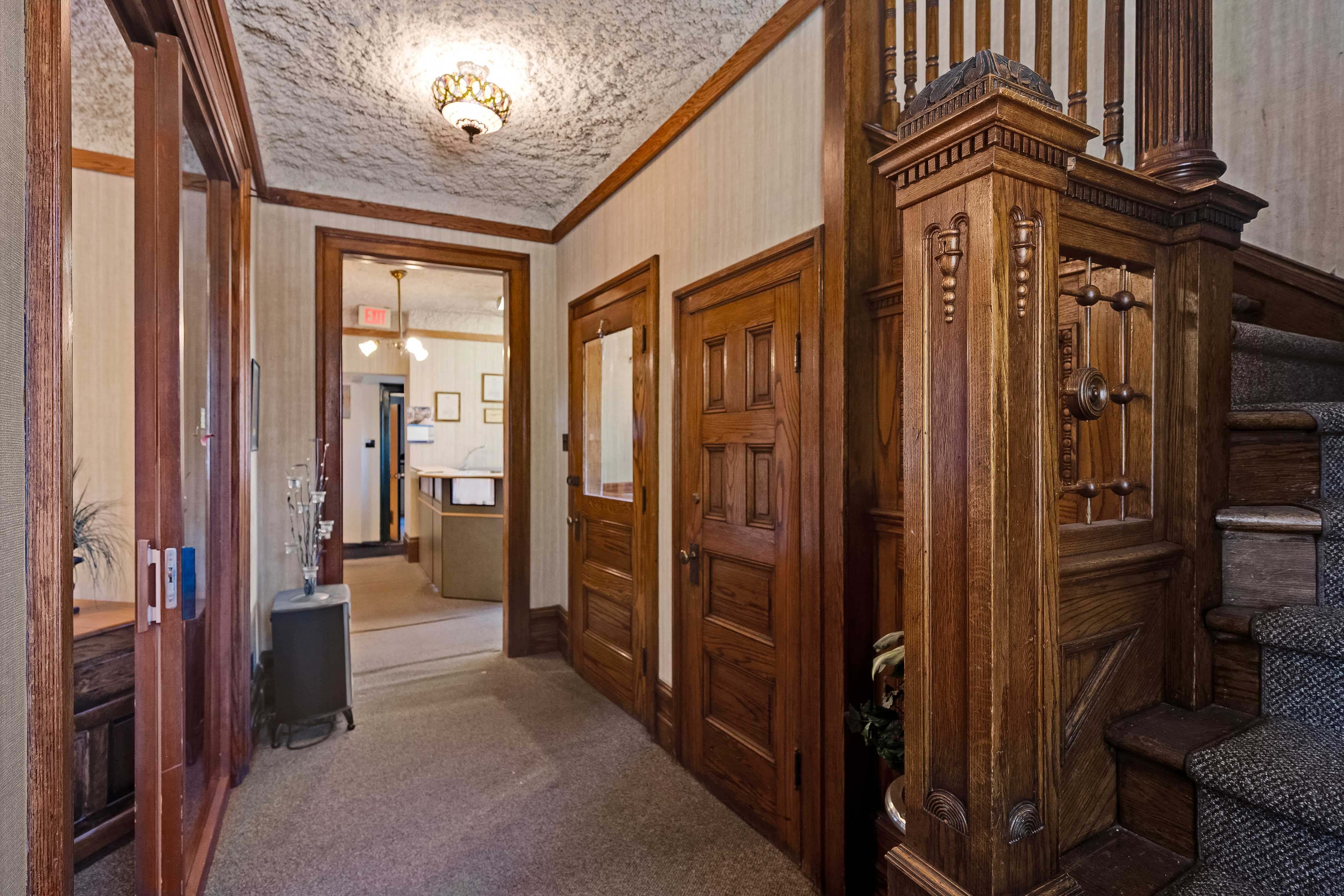 Rare opportunity to own a piece of history in the heart of downtown, just steps from the river! This stunning Queen Anne Revival property, with long-time ownership since 1977, has been thoughtfully converted into professional office space throughout while preserving its original character and craftsmanship. Inside, you’ll find beautiful woodwork, spacious offices, three bathrooms, and plenty of natural light — plus a charming balcony that enhances the building’s appeal. Both the upper level and the fully renovated basement (2020) feature their own private entrances, creating excellent opportunities for additional lease income or flexible use. Practical updates have been completed for peace of mind, including newer carpeting, electrical, heating system, shingles, hot water tank, and more. Outside, there is ample parking with space for 10 vehicles at the rear of the property. Whether you’re looking for an investment opportunity or a unique space for your own business, this property delivers unmatched charm and functionality! Listed below assessed value!
