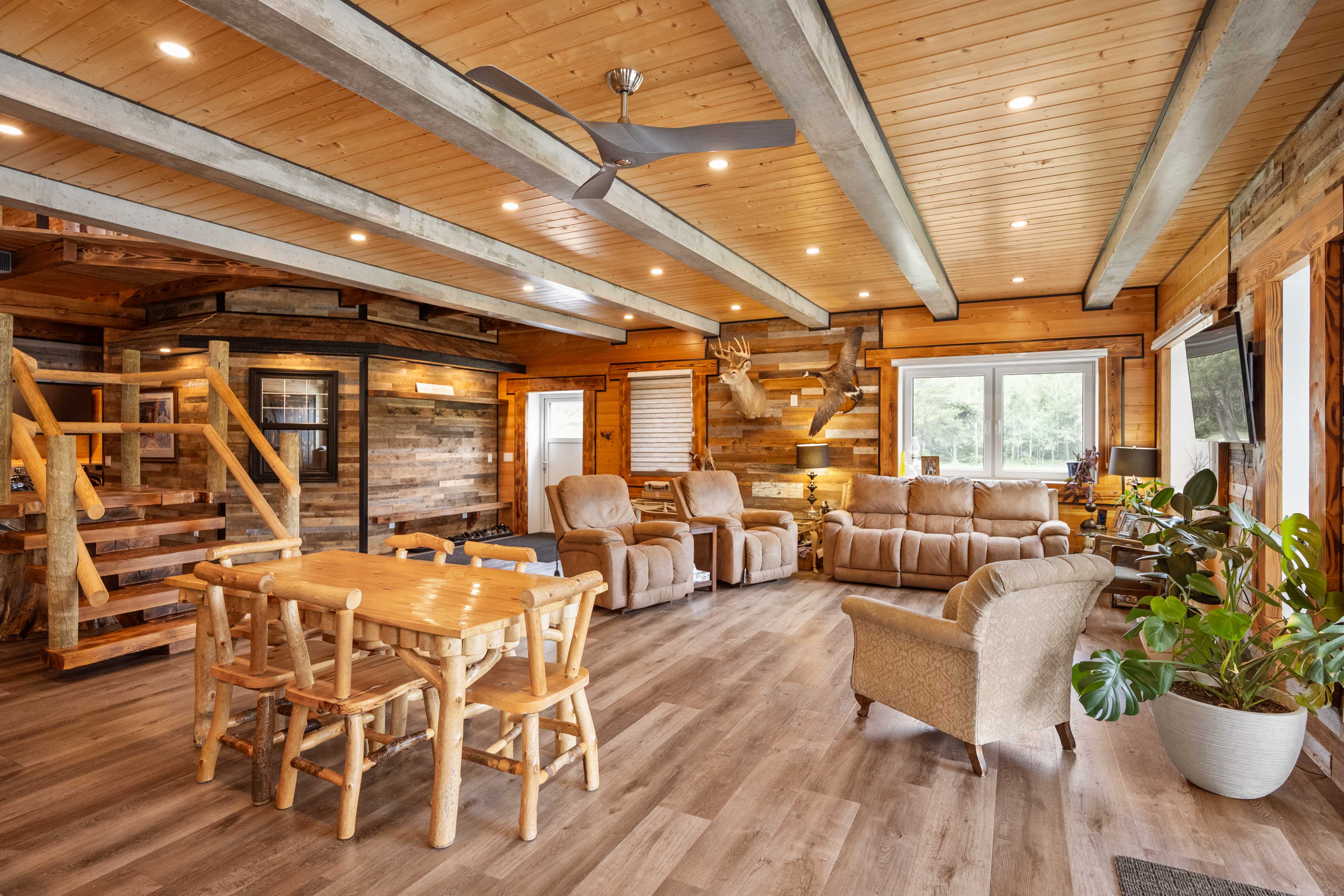 Discover a rare opportunity where exceptional craftsmanship meets the beauty of nature! Spanning 159.44 acres, this impressive 2 storey residence was designed with lasting quality in mind, built with solid concrete beams and a concrete roof for unmatched strength and durability. The interior offers a bright, open layout with a spacious kitchen island ideal for gatherings, a natural light-filled sunroom, and an abundance of thoughtful details throughout. Upstairs, there’s room to add additional bedrooms to suit your needs. Outdoors, the property is equally remarkable complete with a chicken coop, barn, expansive garden space, and a peaceful pond perfect for unwinding. Adventure seekers will appreciate over 5 km of quadding trails weaving through the property. Hosting is made easy with four 30-amp camper hookups, one 50-amp hookup, plus an outdoor shower and bathroom. Whether you dream of a self-sufficient homestead or a weekend escape, this property delivers an extraordinary mix of comfort, function, and natural beauty.