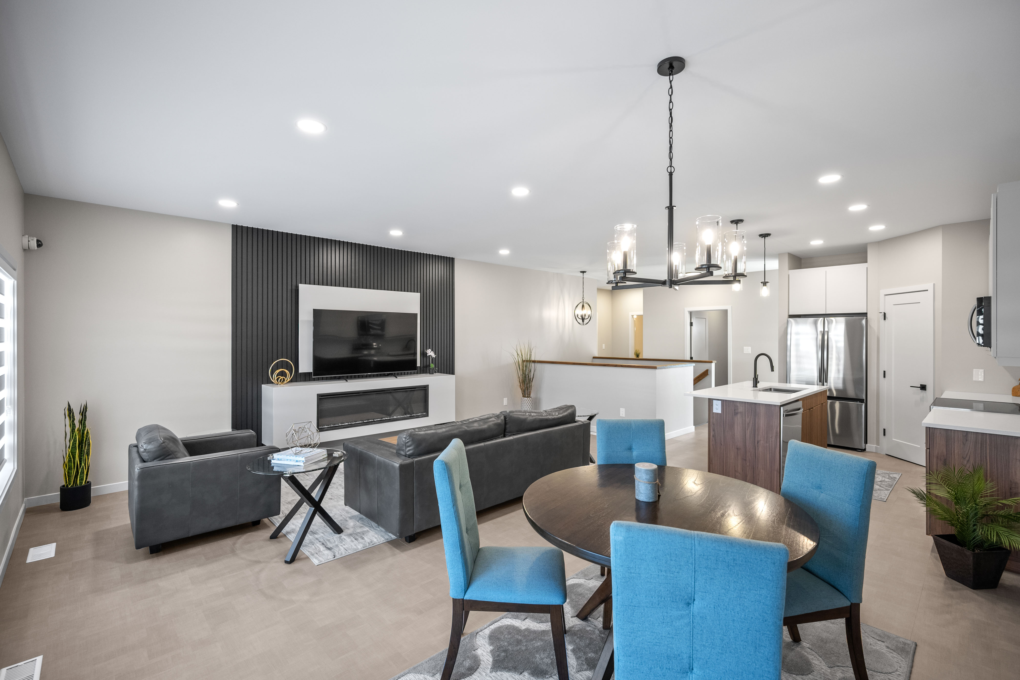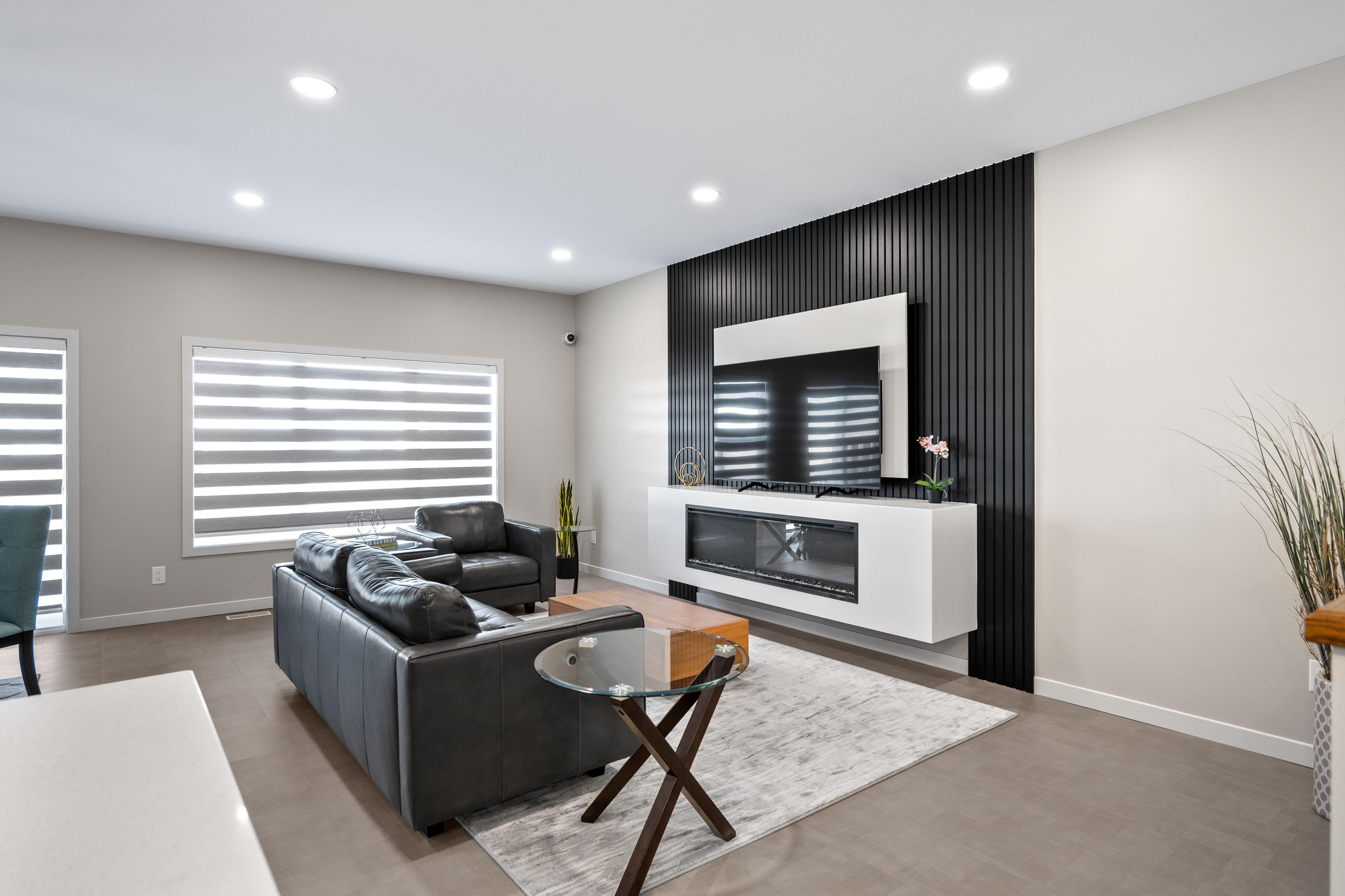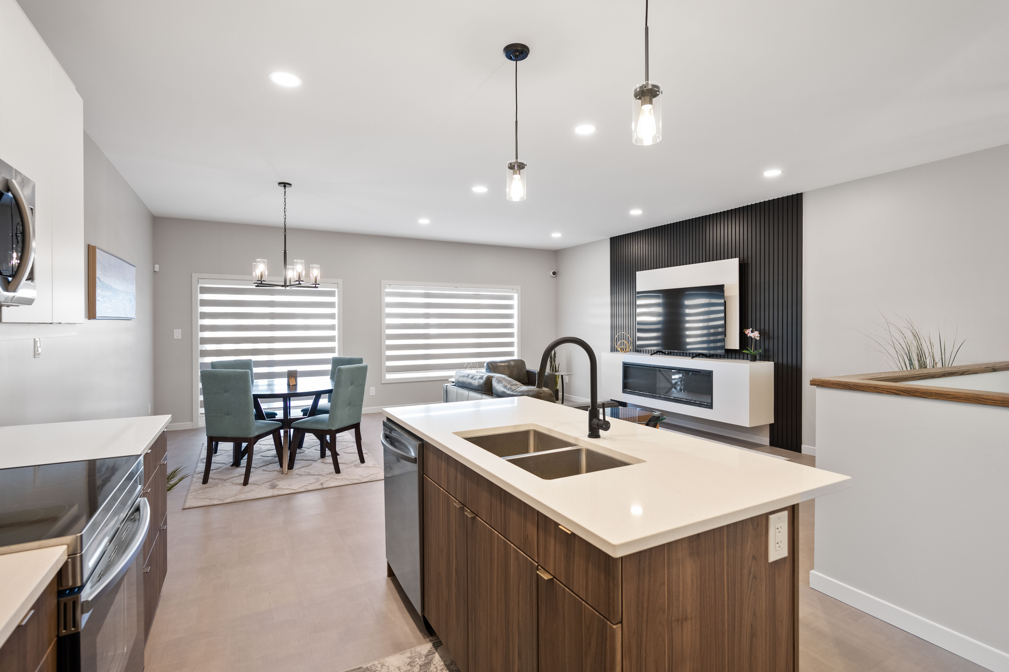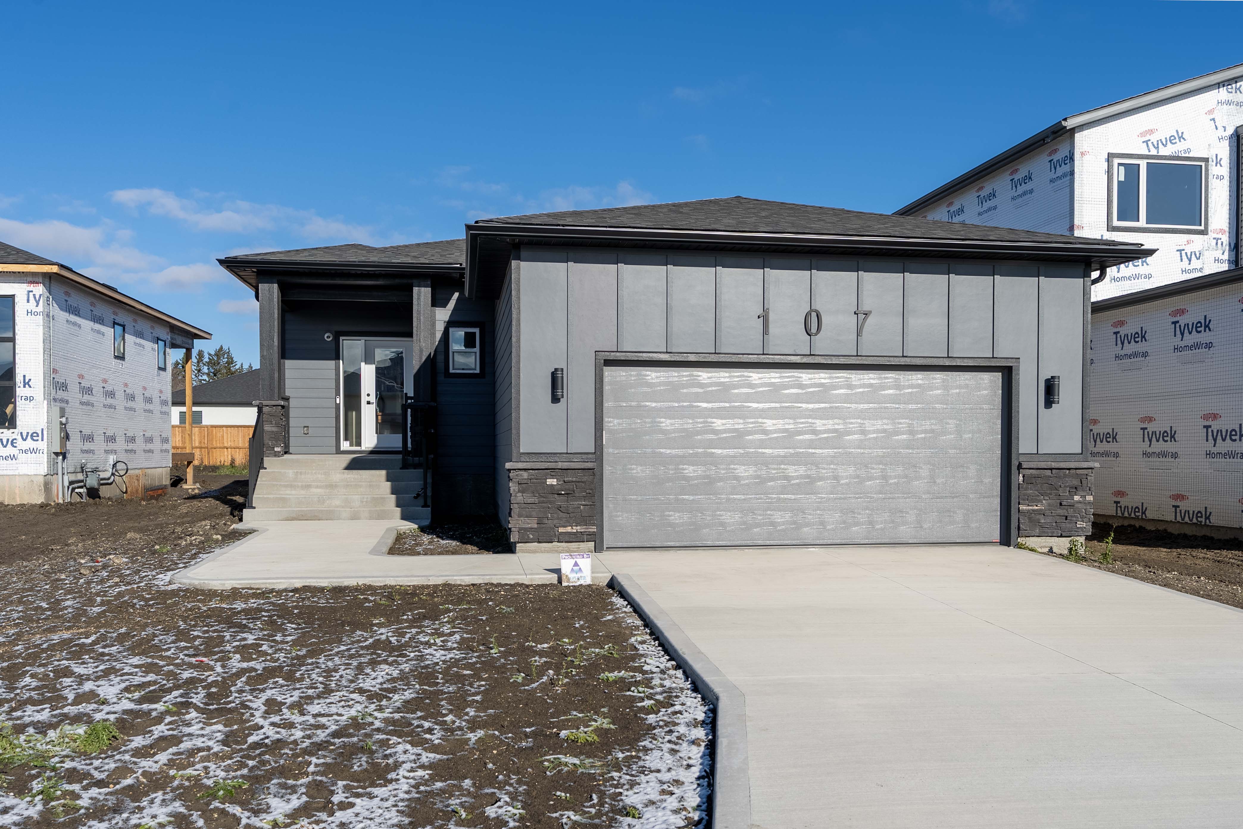 Taxes to be assessed. Affordable luxury can be yours with this beautifully crafted new bungalow! Ready for quick possession, this home offers modern comfort and style throughout. The open-concept main living area impresses with 9’ ceilings, recessed lighting, and luxury vinyl plank flooring, centered around a striking feature wall with a 50" electric fireplace. The contemporary kitchen includes a corner pantry, two-tone cabinetry, quartz countertops, tiled backsplash, and a spacious island—plus stainless steel appliances: fridge, stove, dishwasher, and over-the-range microwave. The primary bedroom features a walk-in closet, a stylish feature wall, and a 4-piece ensuite. Two additional bedrooms and another full bath complete the main level. Convenient main-floor laundry is located in the generous mudroom, which connects to the 22' x 22' attached garage with concrete driveway, walkway, and garage door opener. The full basement—with oversized windows—offers great potential to double your living space. Upgraded lighting, black plumbing fixtures, Delta MS foundation wrap, window blinds, alarm system, and New Home Warranty add even more comfort and peace of mind.
