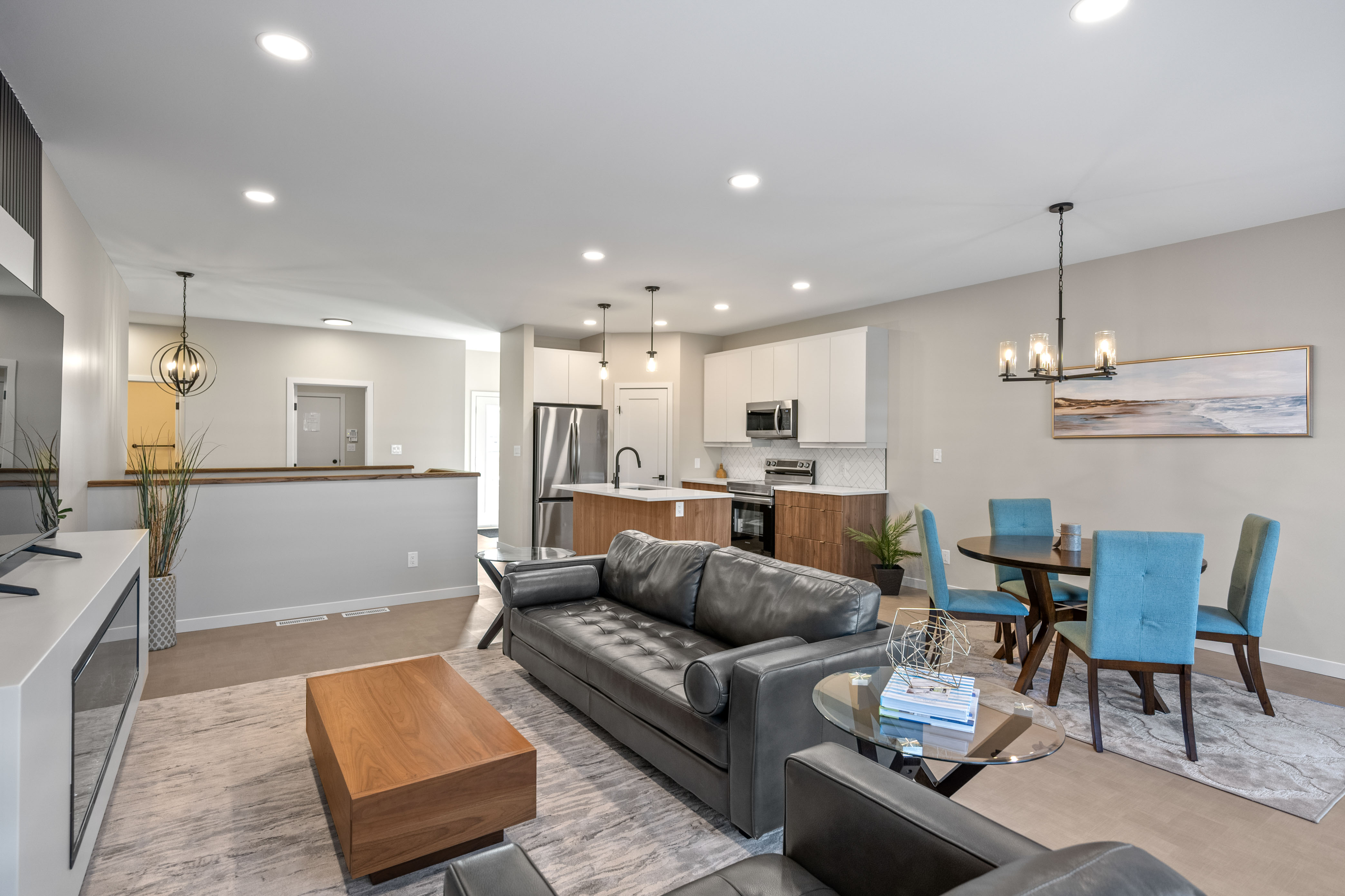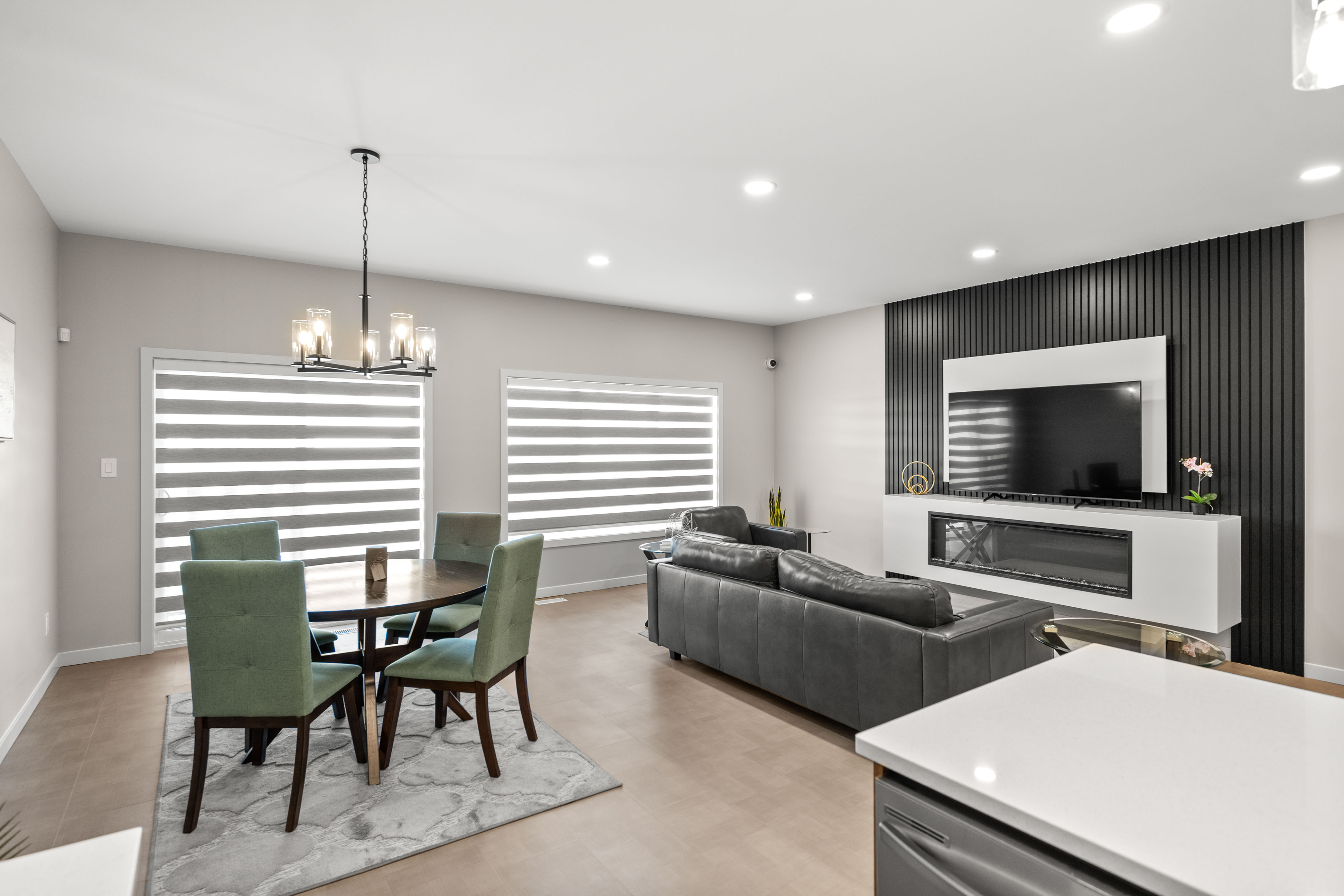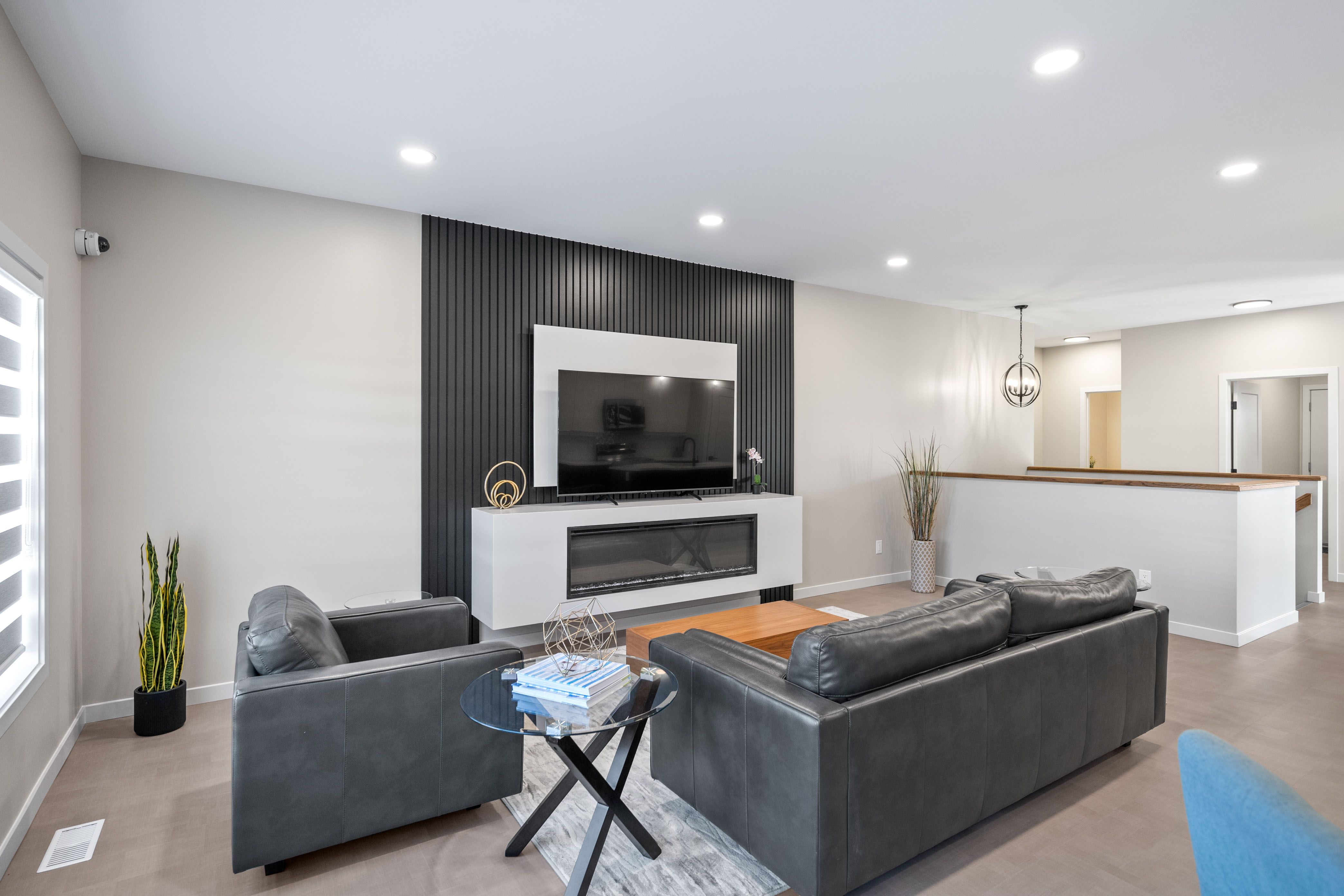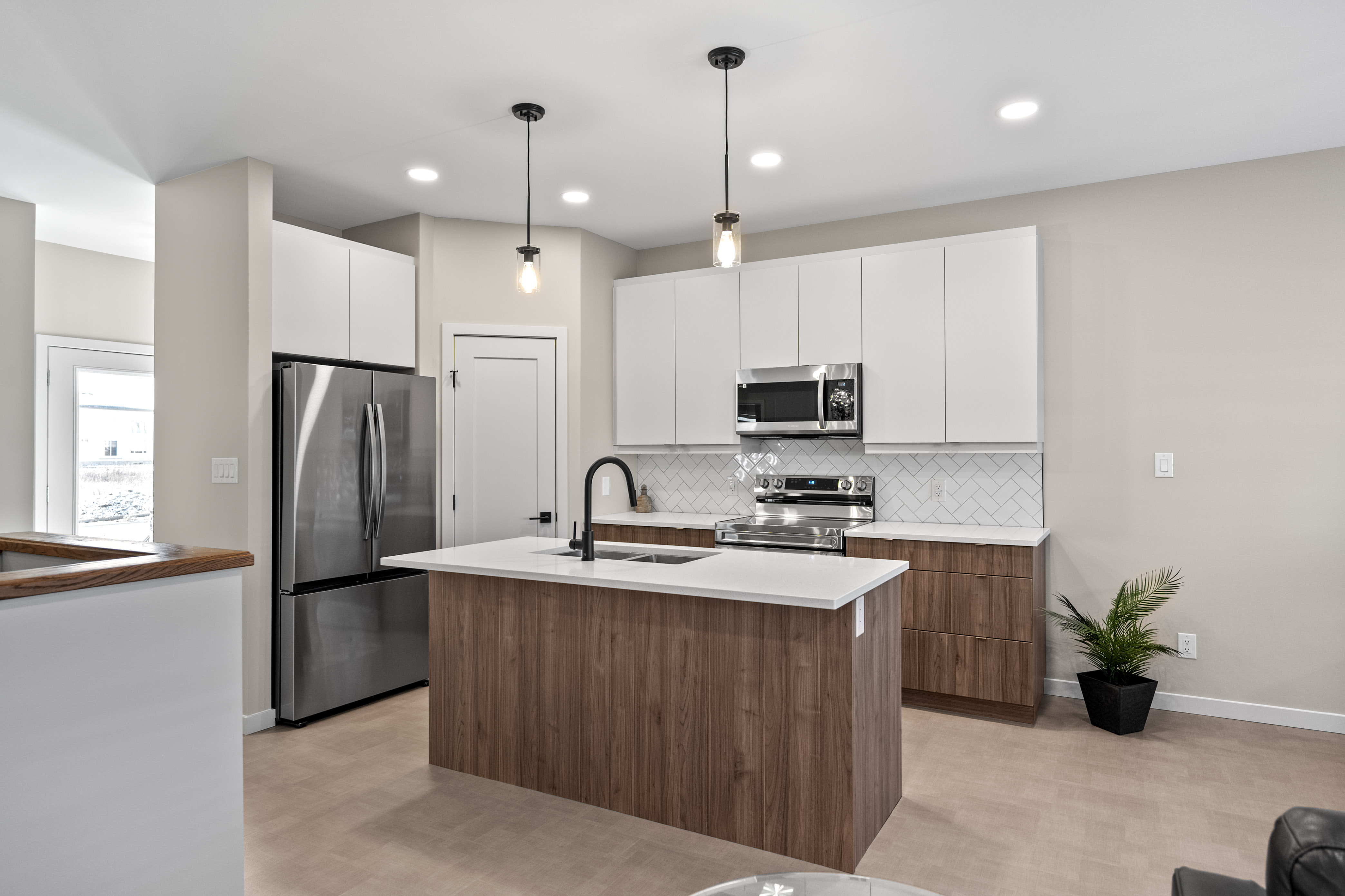 Taxes to be assessed. Affordable luxury can be yours with this beautifully crafted new bungalow! Ready for quick possession, this home offers modern comfort and style throughout. The open-concept main living area impresses with 9’ ceilings, recessed lighting, and luxury vinyl plank flooring, centered around a striking feature wall with a 50" electric fireplace. The contemporary kitchen includes a corner pantry, two-tone cabinetry, quartz countertops, tiled backsplash, and a spacious island—plus stainless steel appliances: fridge, stove, dishwasher, and over-the-range microwave. The primary bedroom features a walk-in closet, a stylish feature wall, and a 4-piece ensuite. Two additional bedrooms and another full bath complete the main level. Convenient main-floor laundry is located in the generous mudroom, which connects to the 22' x 22' attached garage with concrete driveway, walkway, and garage door opener. The full basement—with oversized windows—offers great potential to double your living space. Upgraded lighting, black plumbing fixtures, Delta MS foundation wrap, window blinds, alarm system, and New Home Warranty add even more comfort and peace of mind.