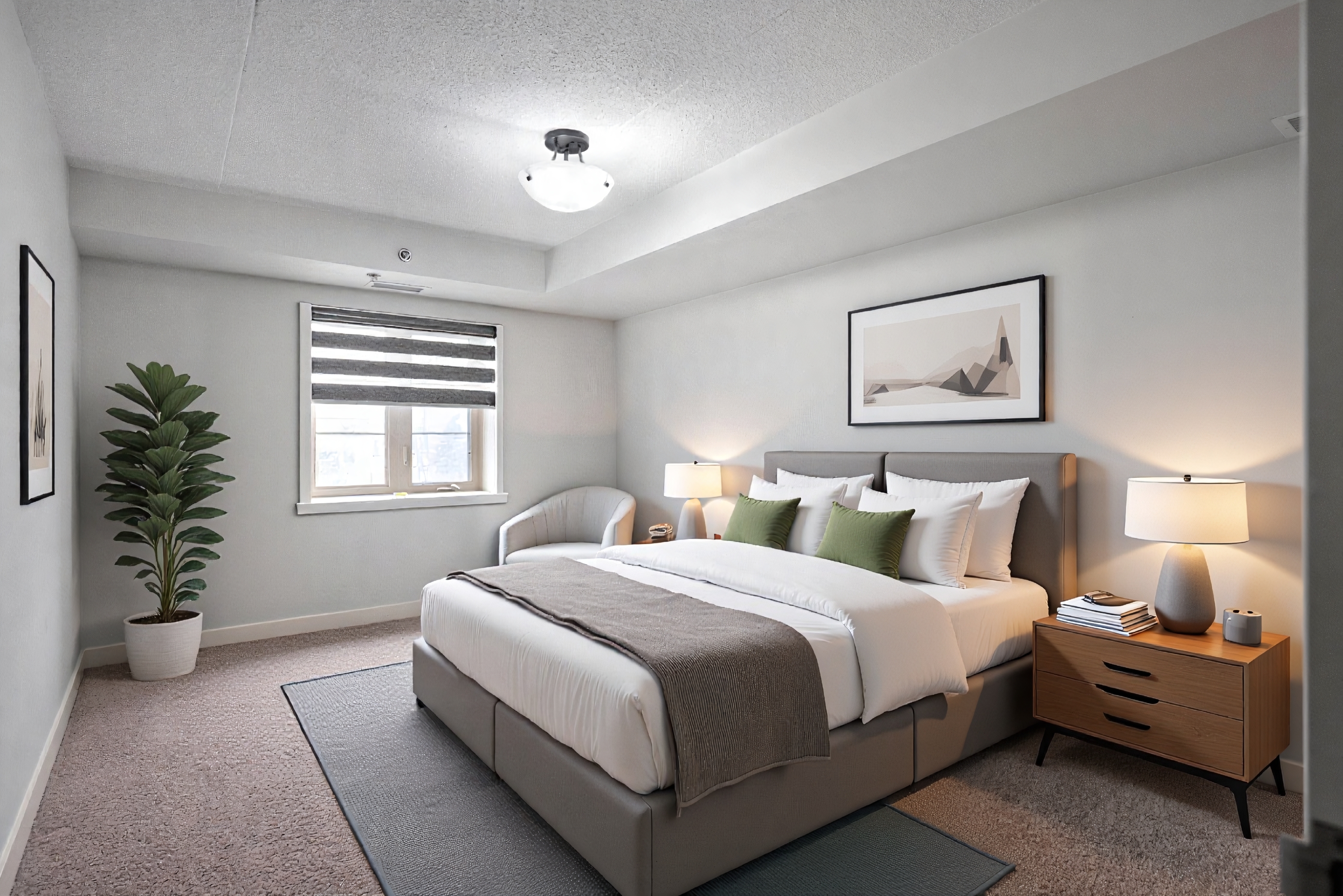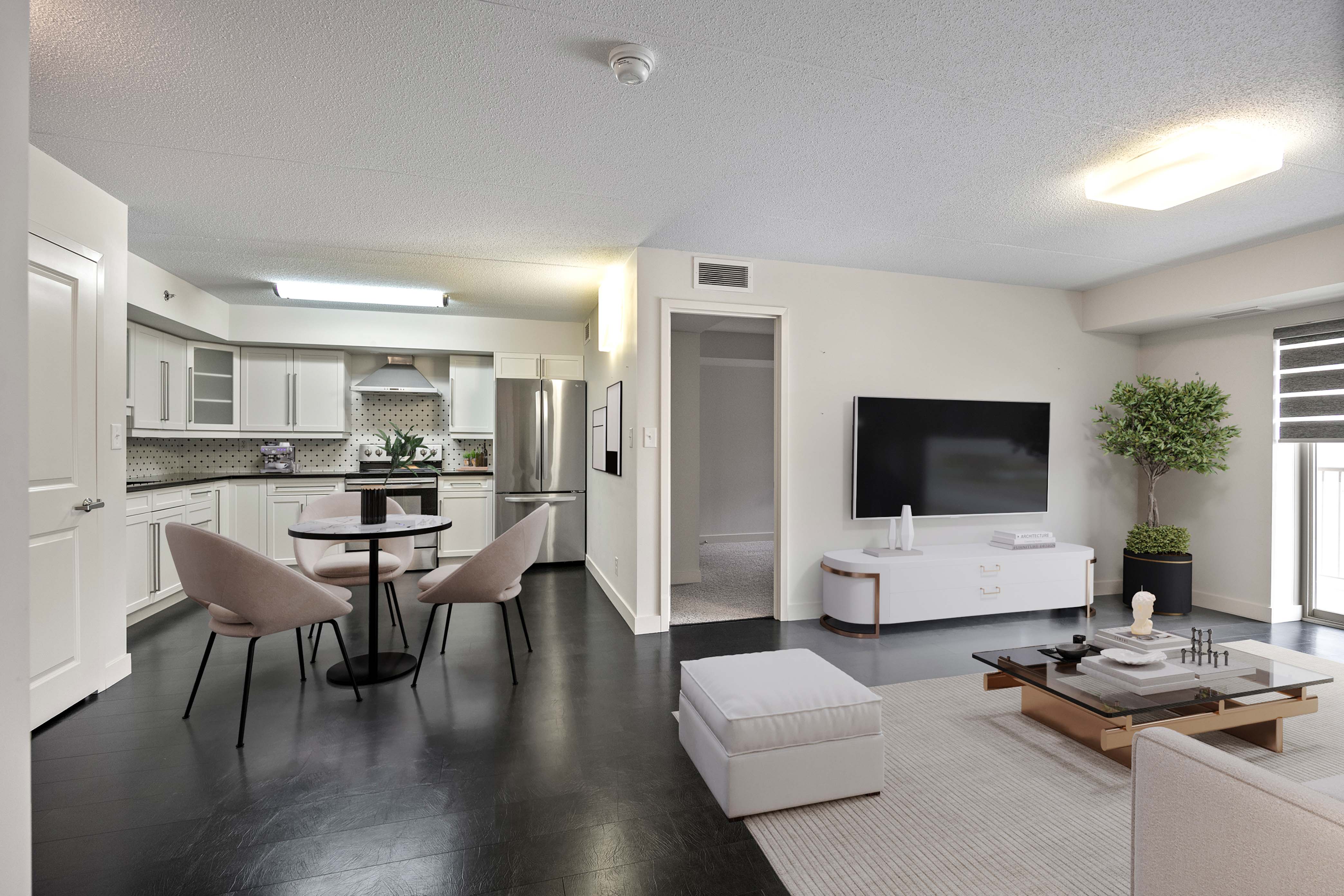 Welcome to this 2-bedroom condo in the Garden City neighbourhood, offering 905 sqft of comfortable, well-designed living space. Located on the third floor, step inside to a functional entryway with a convenient coat closet, opening into a warm and inviting living/dining area. The kitchen features granite countertops and stainless steel appliances. The suite features two generously sized bedrooms and one full bathroom, with the primary bedroom complete with a walk-in closet. Enjoy the added convenience of in-suite laundry, along with an indoor parking stall with adjacent storage. Step out onto your private spacious balcony, which also includes additional storage, perfect for seasonal items. A fantastic opportunity in a well-established location close to shopping, dining and amenities! Photos 2-4 and 7 are virtually staged.